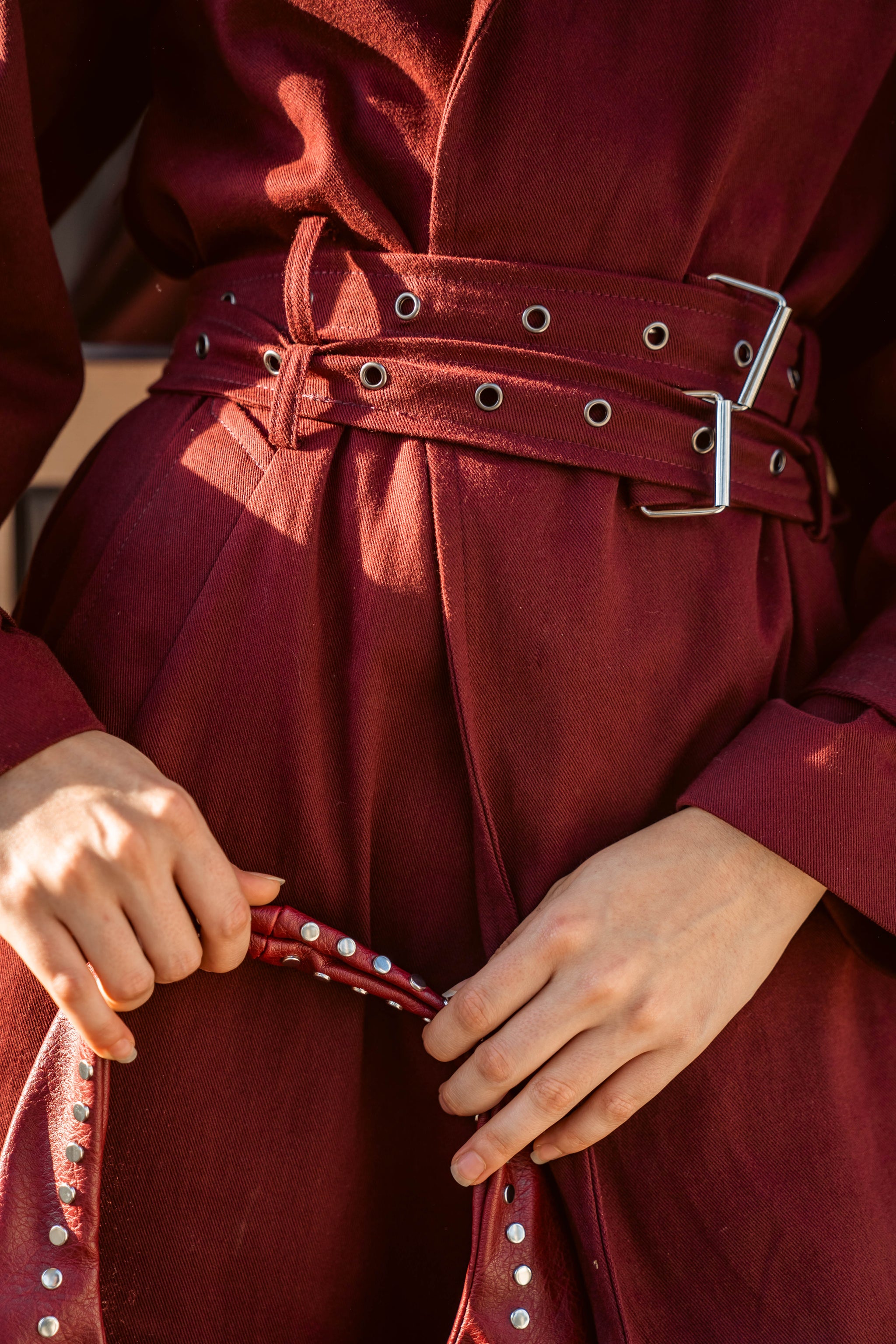 The Classic trench coat reinterprets a classic silhouette with a rich, bold color and elegant, flowing drape. Its soft, tie-waist closure allows you to cinch the garment for a flattering look. Available in both Olive Green & Burgundy.