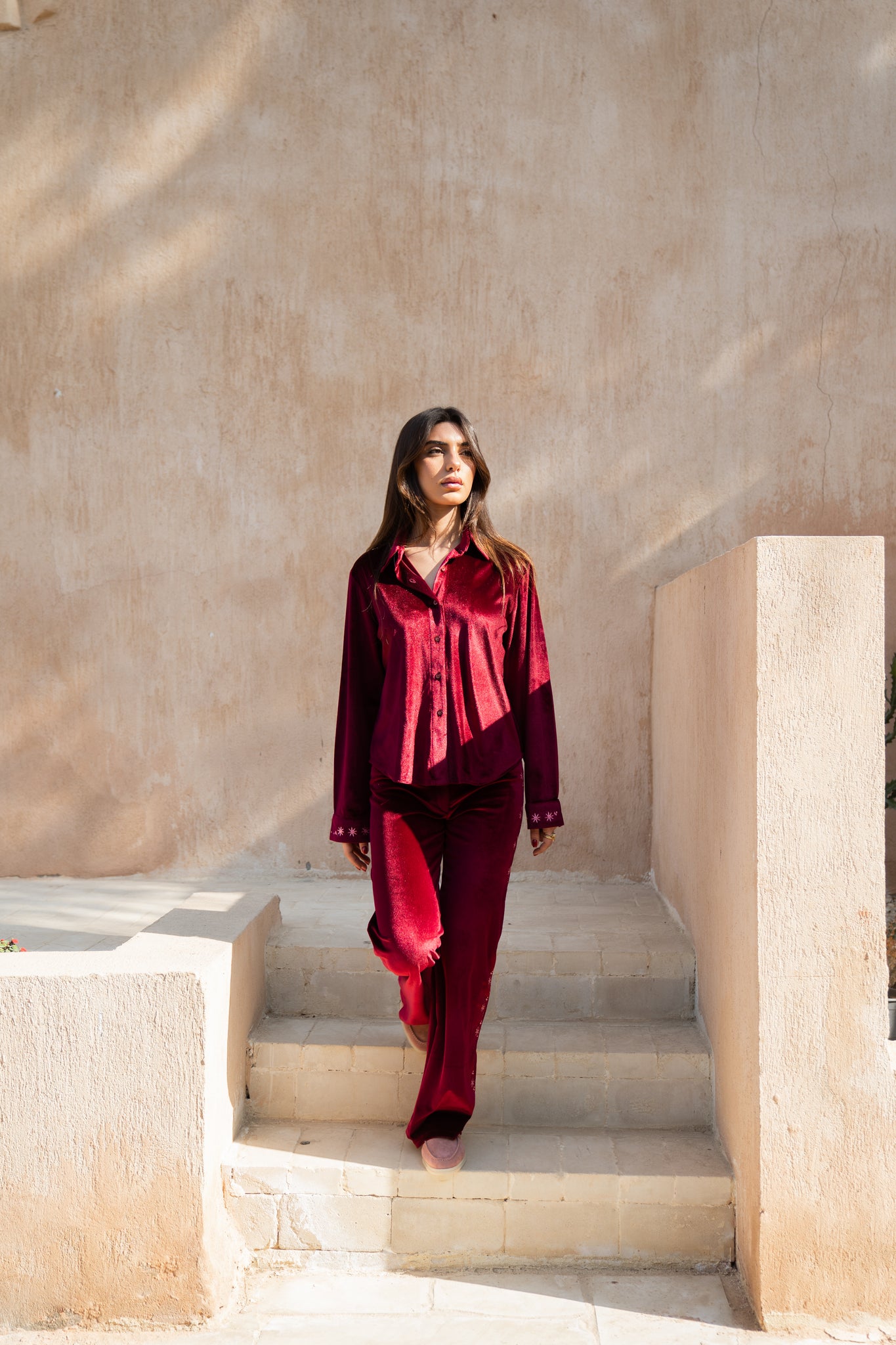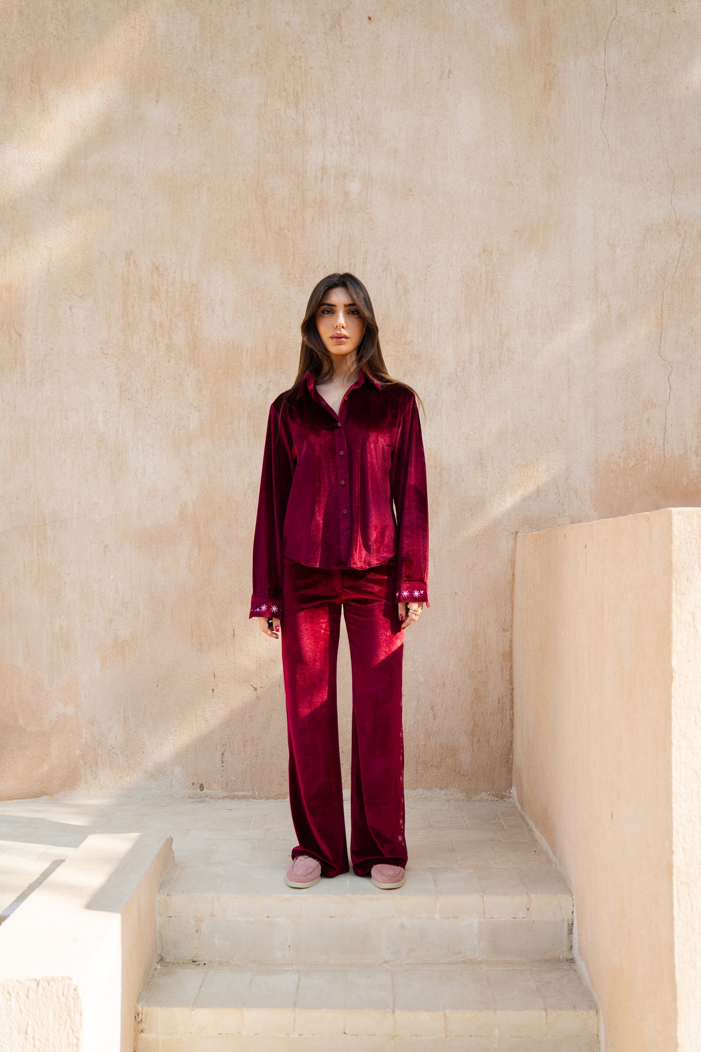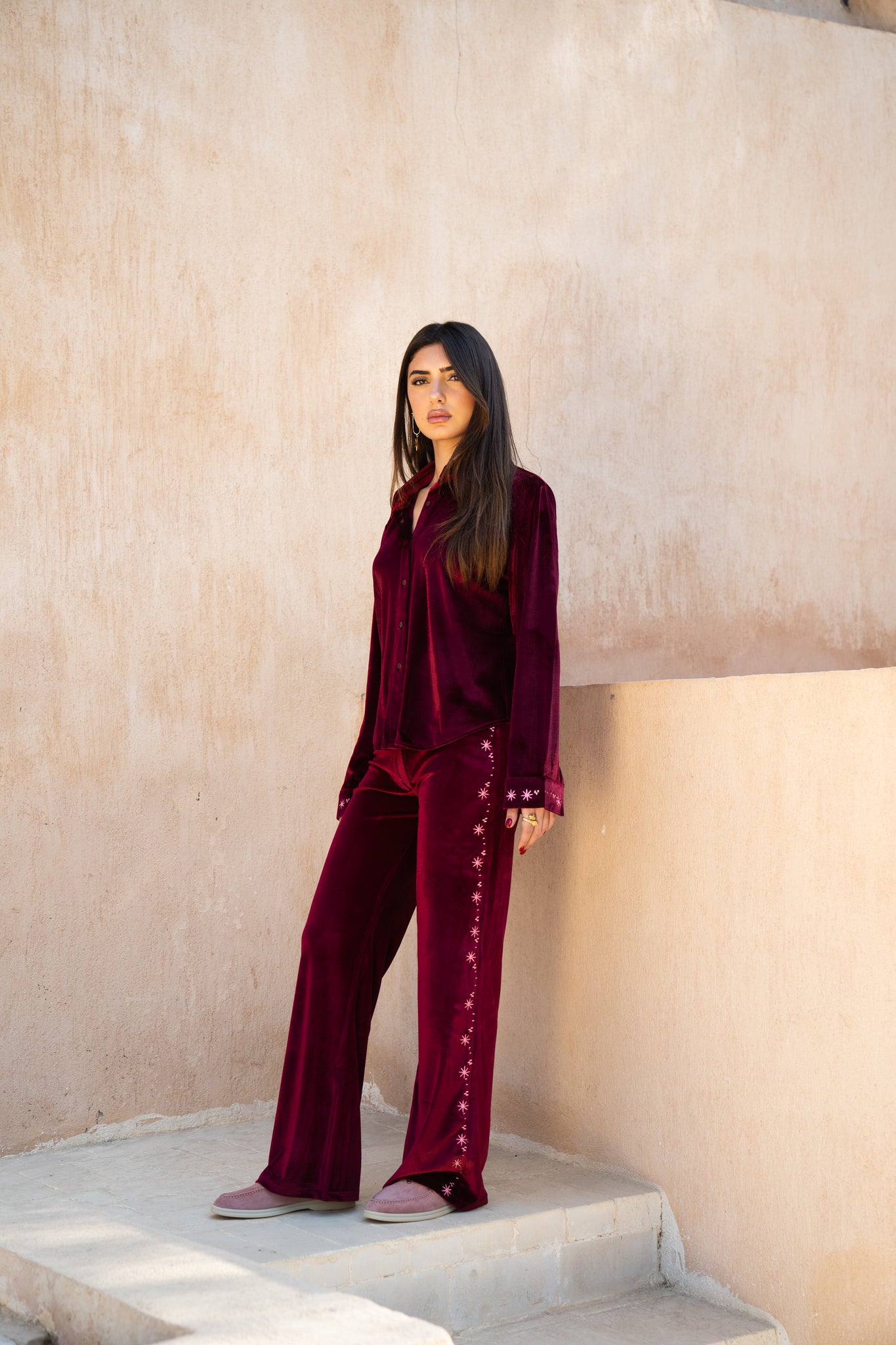 Layaly Ramadan Velvet Set - Burgundy
