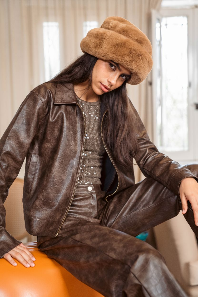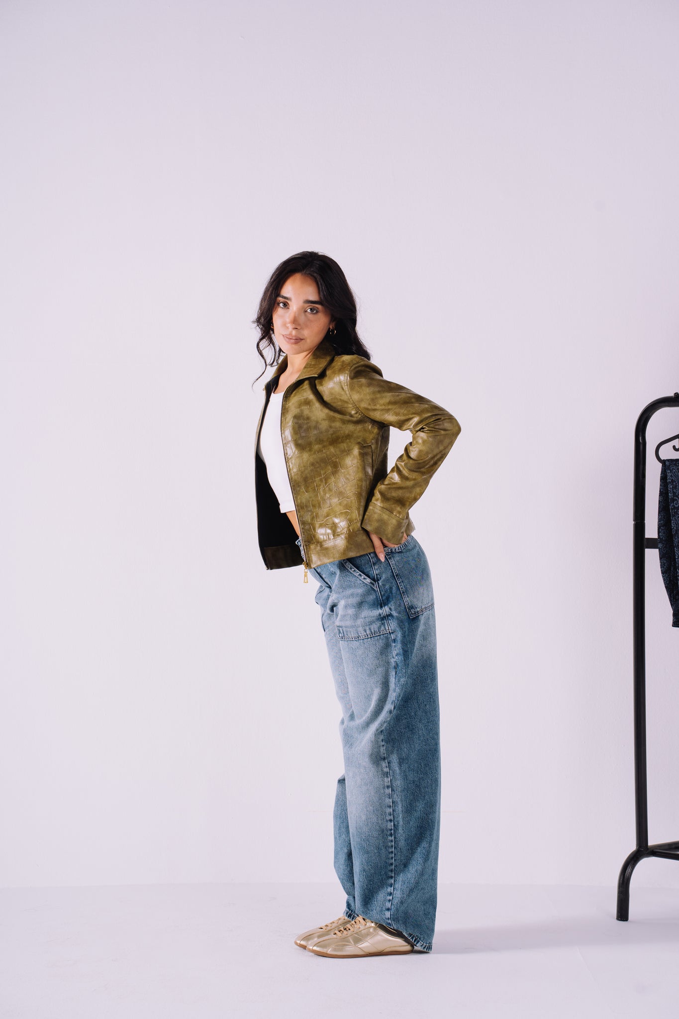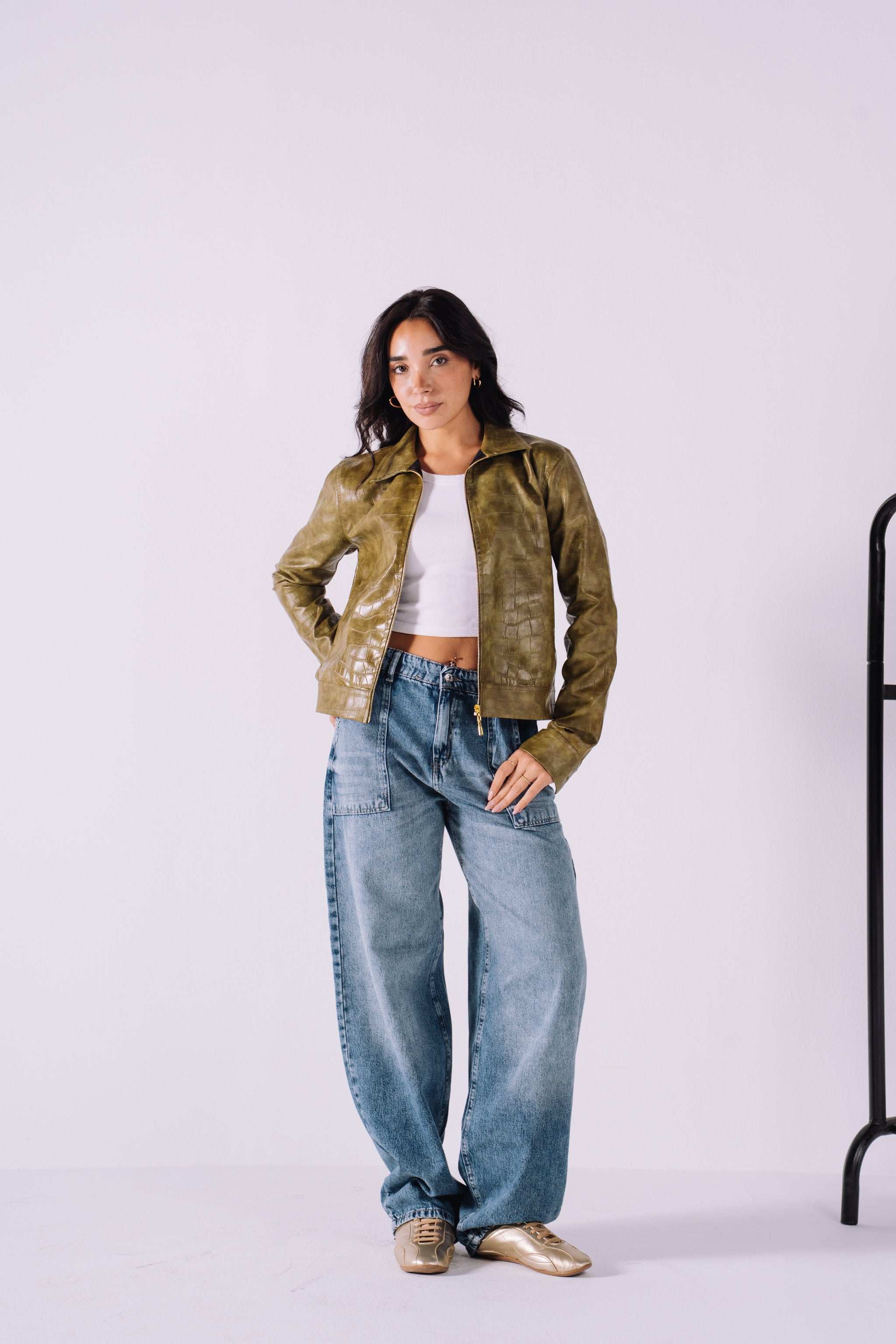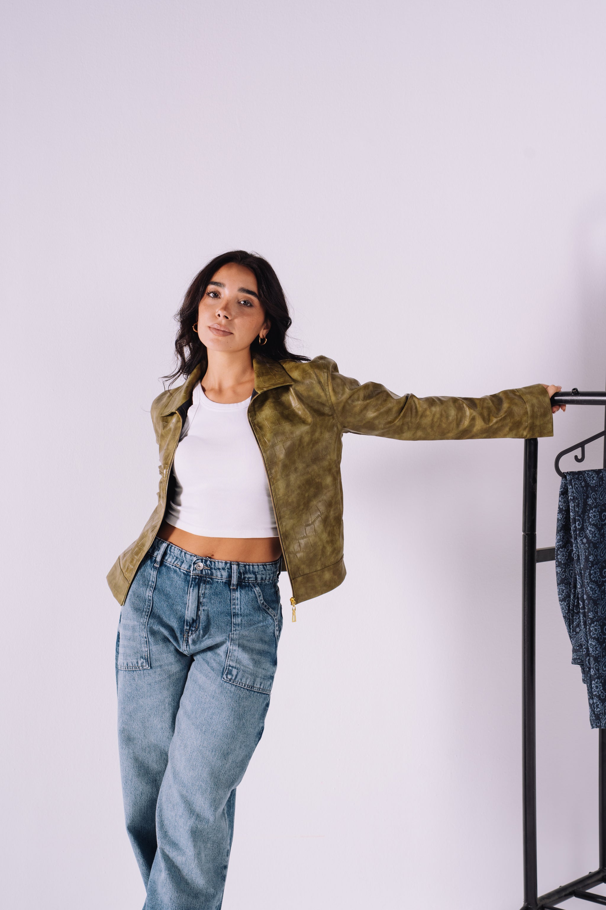 A luxurious leather jacket with a subtle crinkled texture that offers an authentic vintage feel. This timeless piece features a classic collar and durable structure, making it a rugged yet refined outerwear essential. Available in 2 colors Brown & Olive.