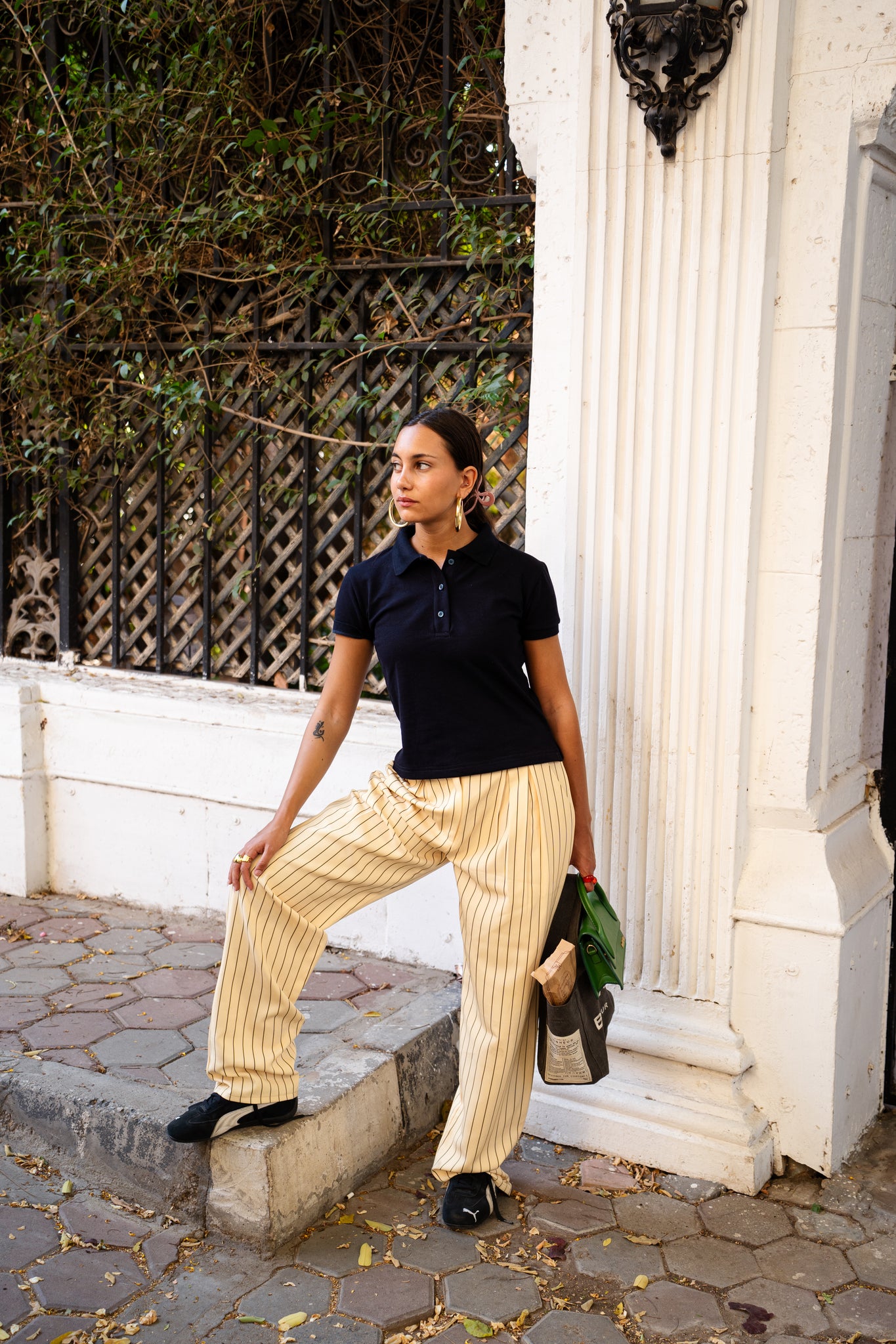 A fitted vest in striped yellow tailoring fabric. Sleek and structured, it’s a versatile layering piece that adds instant polish and power to any look.