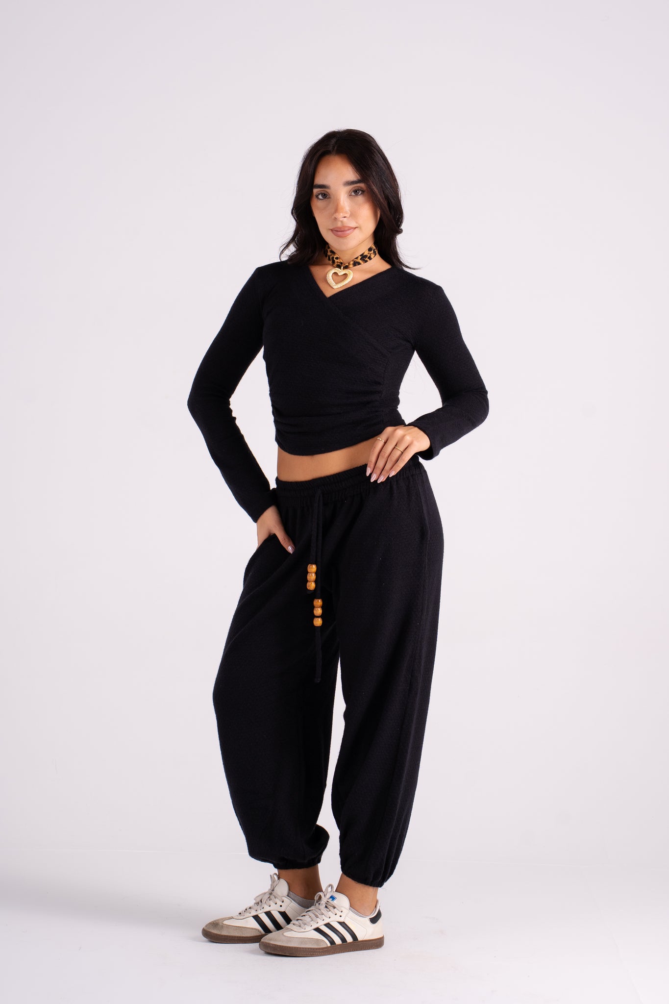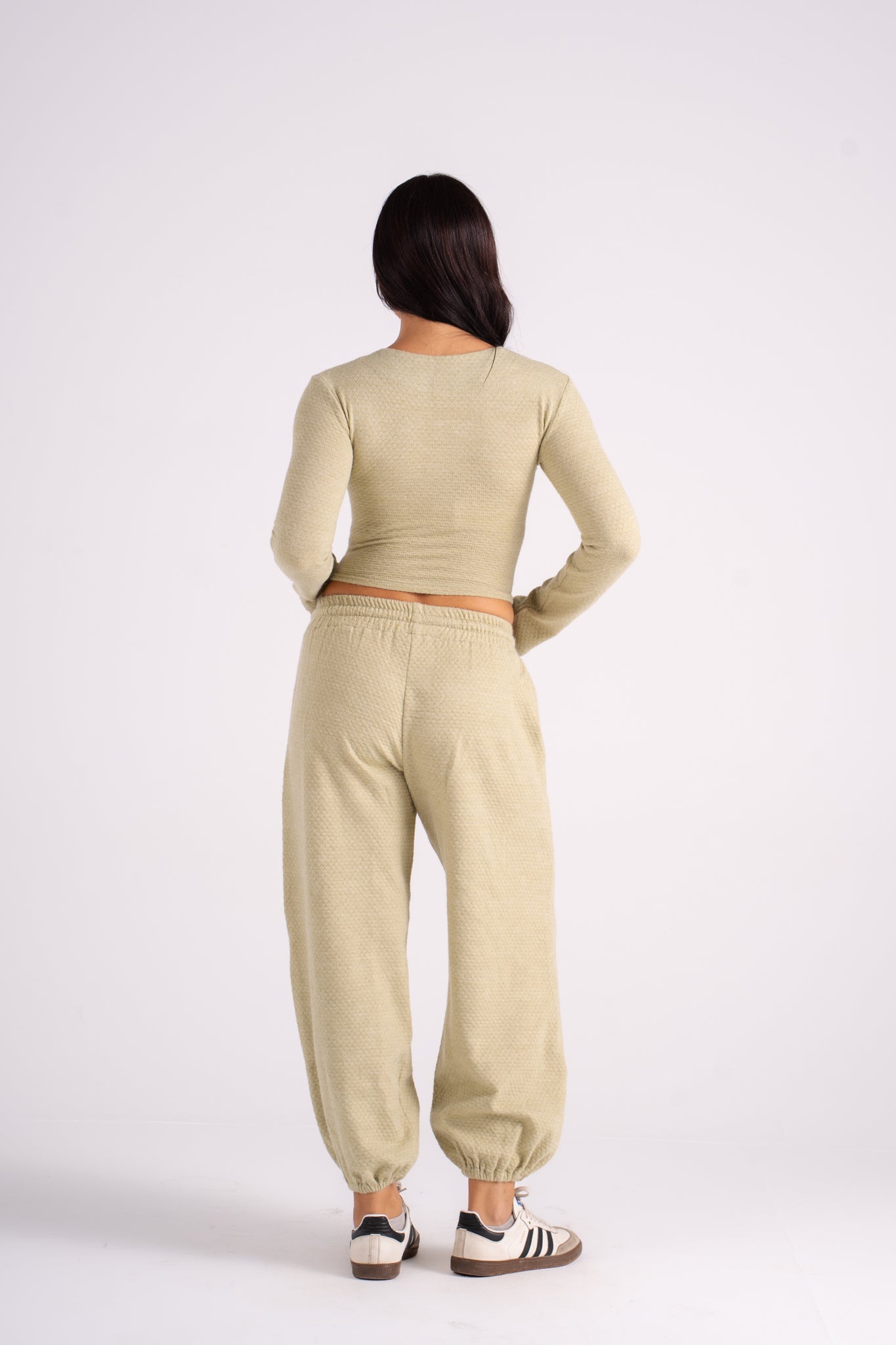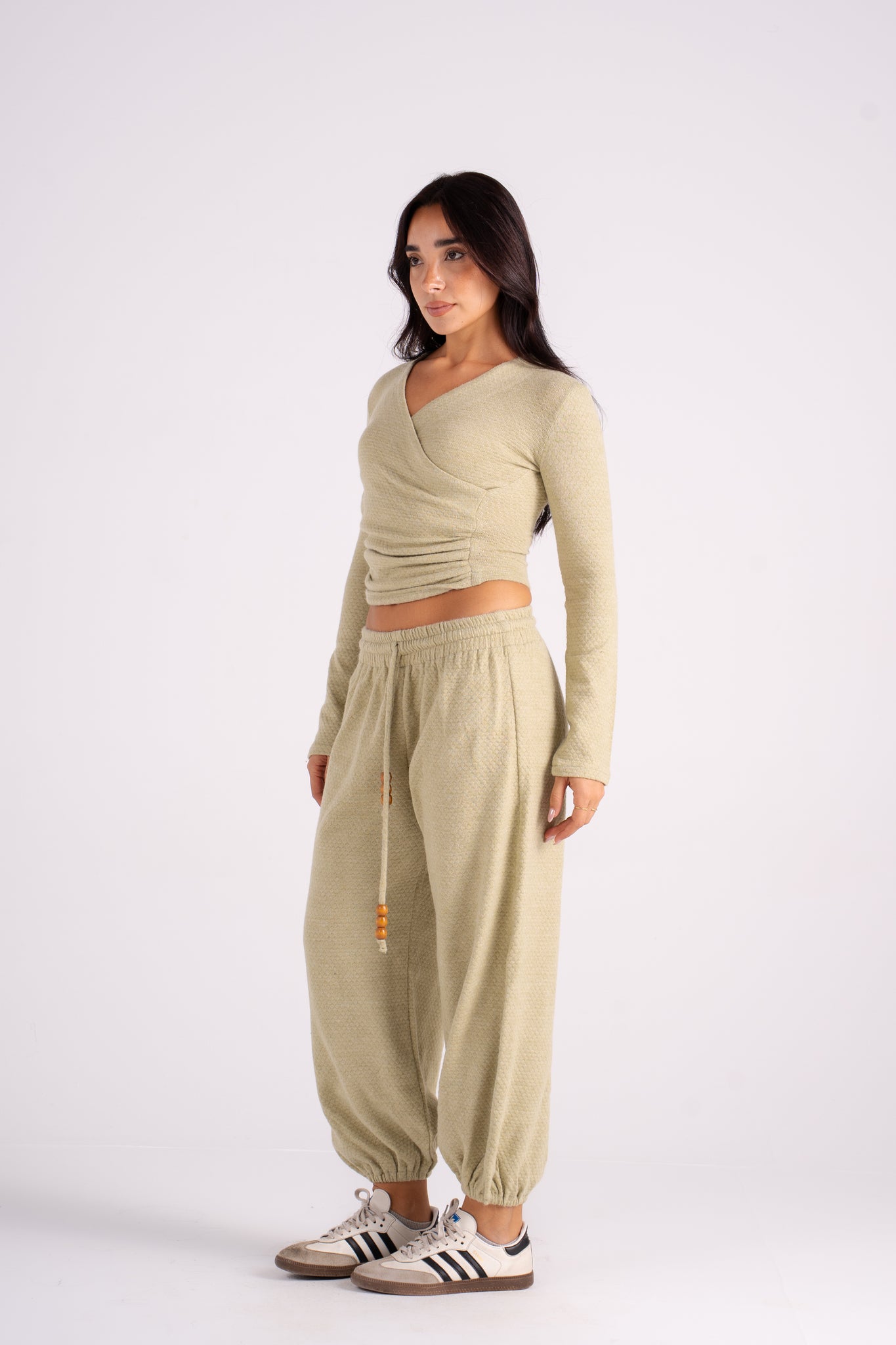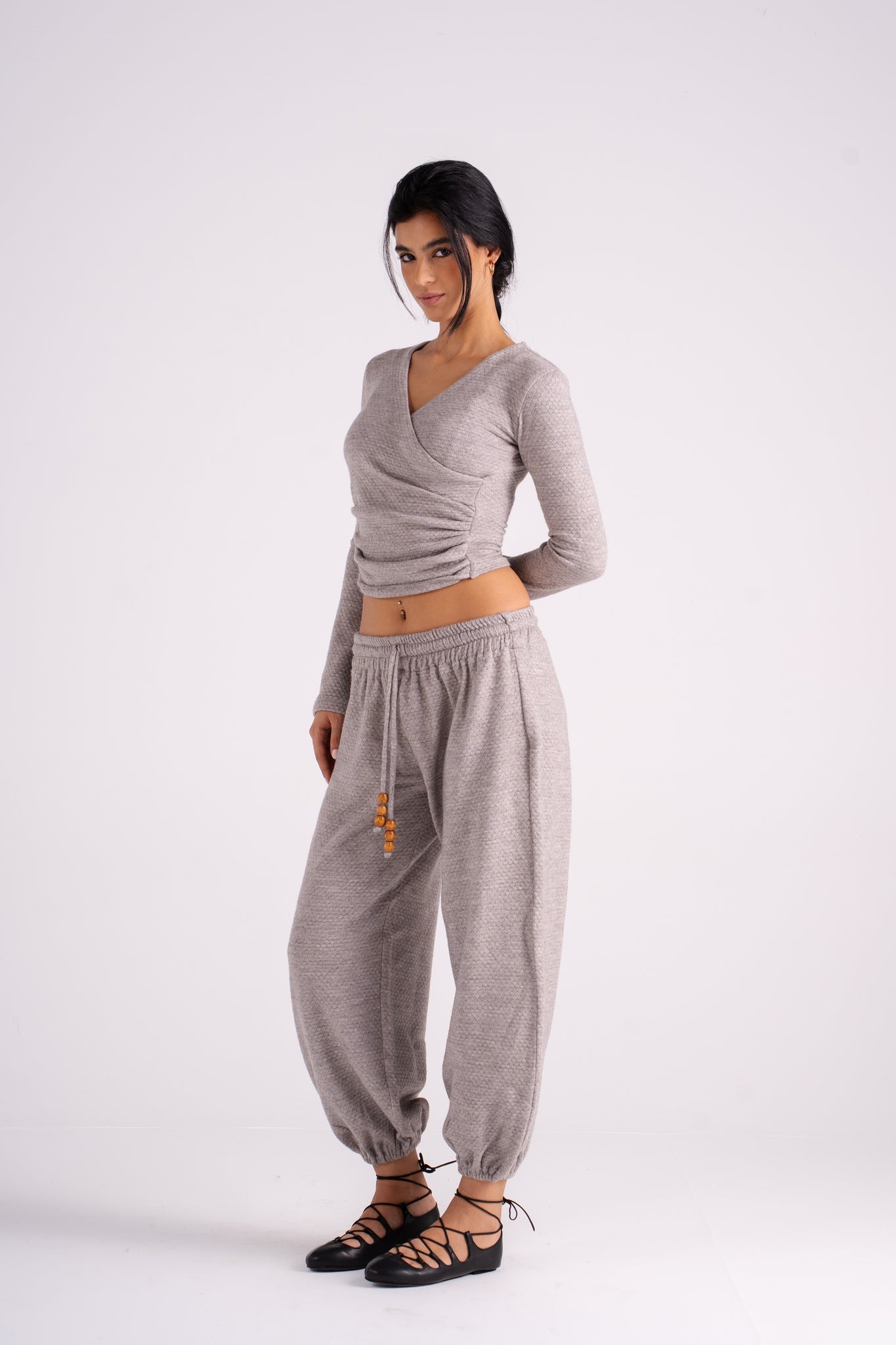The Popcorn Set features a soft texture and a flattering wrap-style top paired with cozy drawstring pants. It's the perfect monochromatic look that blends effortless comfort with bold, vibrant color. Available in 5 colors.
