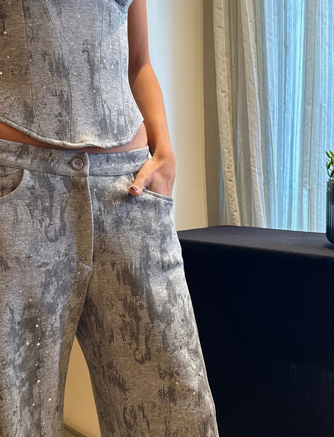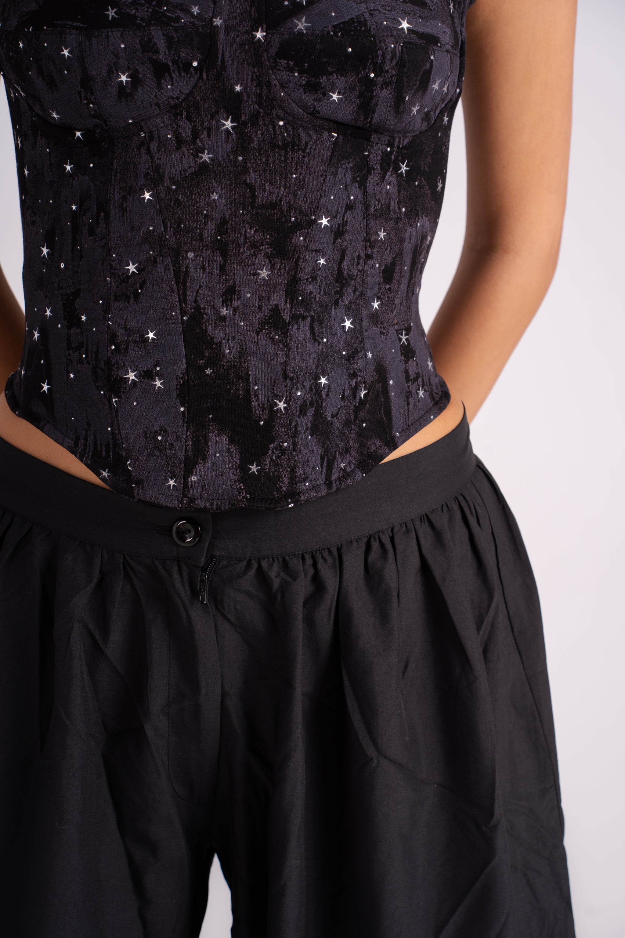 A striking green and black bustier with a sweetheart neckline, featuring subtle star-like embellishments for a cosmic touch.